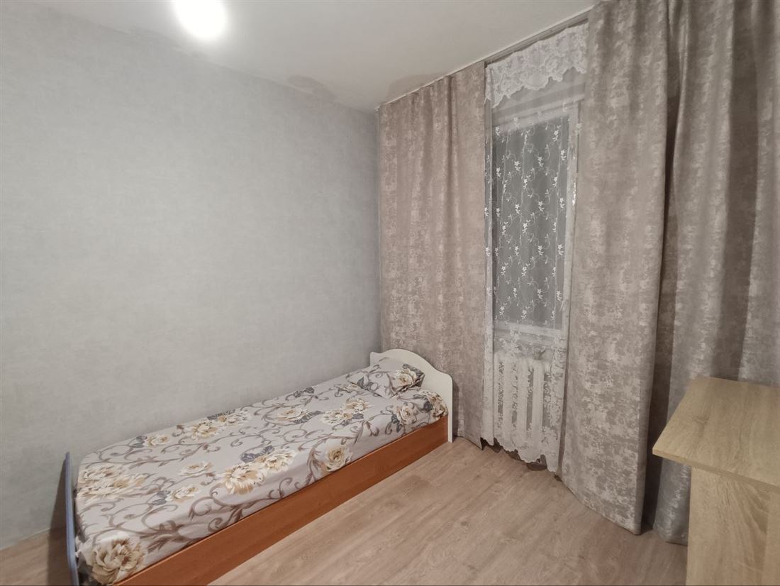 Сдаётся маленькая комната в 4х комнатной квартире для любого человека. Все удобства. В комнате новый ламинат, односпальная кровать, большой шкаф для одежды, стол, тумбочка. В квартире санузел раздельный, кухня общая на 4 комнаты. В других комнатах проживают по одному человеку. Первый этаж. В квартире запрещено употреблять алкоголь, курить, устраивать мероприятия. Коммунальные услуги оплачиваются отдельно и делятся на всех поровну. При вселении залог 7000 - возвратный. Договор - обязательно.